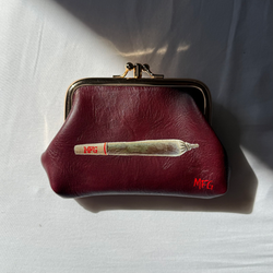 Shes a mighty 5.5 inches wide and 4 inches tall. Functional metal clasp opening up to 2 compartments perfect for seperating coins from cash, joints from lighters, hot sauce packets from candy, etc., Comprised of vegan leather because hello I am a vegetarian animal chica I like to save the cows. However I will never compromise quality for price therefore these pouches have demonstrated to be great quality, hold the paint extremely well, and didn't kill any cows in the making:)
