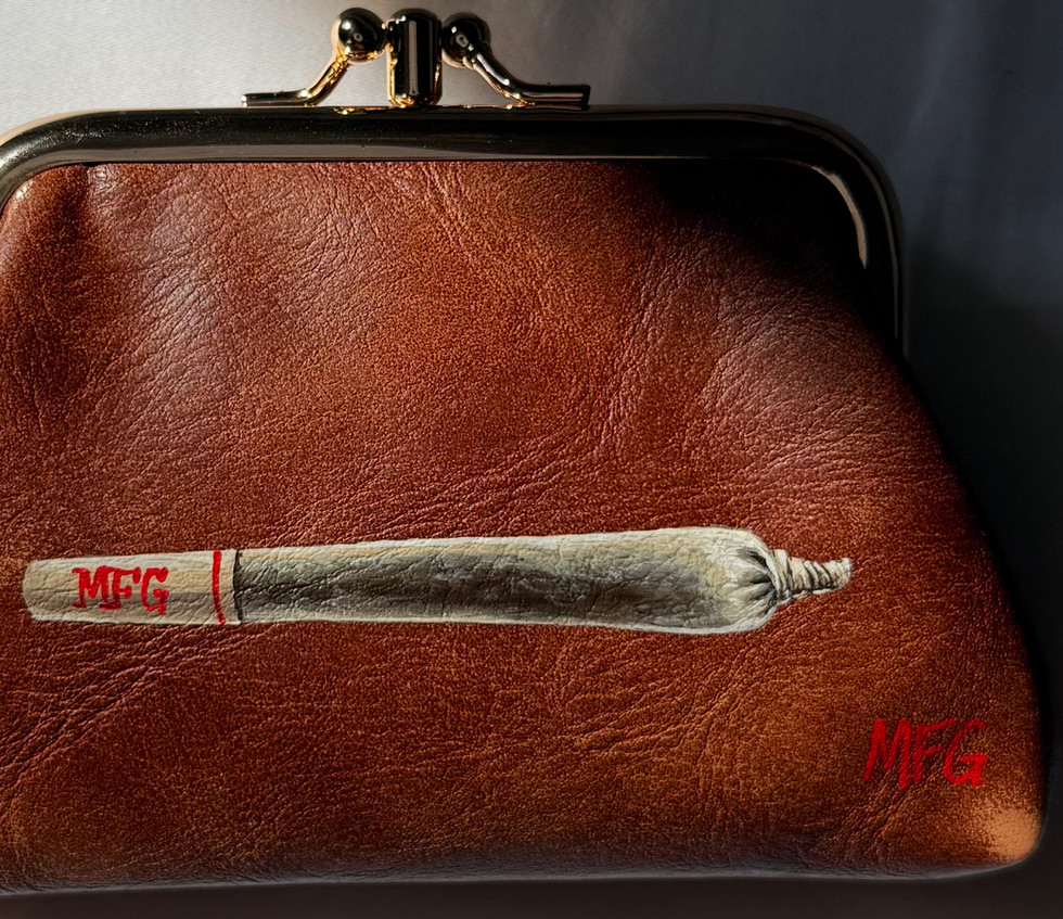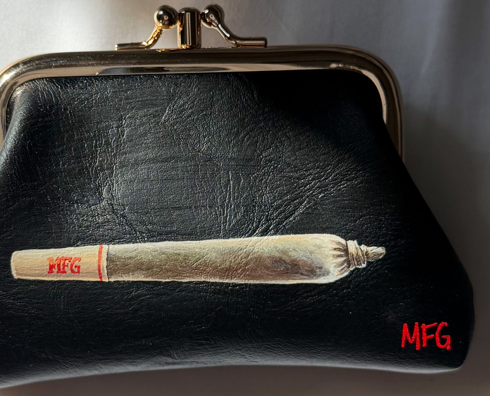 Purses are prepped with sanding and leather deglazer and prep so that the paint adheres to the leather, virtually becoming a part of the bag.